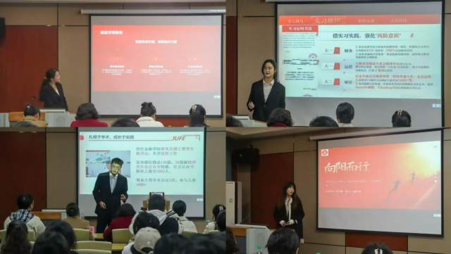 评选会上,主持人详细介绍本次自强之星的评选方法,20位候选人按照既定抽签顺序依次上台进行3分钟自我展示。胡力以《石榴映红,自强筑路》为题,讲述自己赴疆支教、学术深耕、自立奋进的逐梦之路,彰显学生党员扎根基层、兼济天下的自强底色;张文馨以《向阳而行,自成锋芒》为题,分享自己学业拔尖、躬身实践的成长历程,传递向阳生长的自强信念;尹曦用《笃行不怠,向阳自强》书写勤学笃行、实干担当的青春答卷,彰显知行合一的奋进初心;李伶以《以自强为帆,以真为舵》展现深耕学业、科研探索的奋斗姿态,诠释求真笃行的青年担当……各位参赛选手以鲜活的奋斗故事,生动诠释了新时代金融学子的自强精神与青春担当。